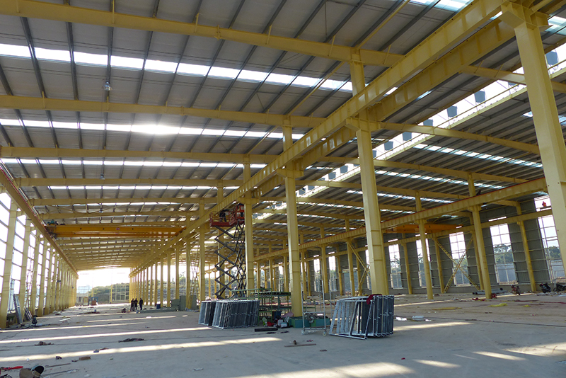2016年12月23日,一號(hào)廠房屋頂基本搭建完畢,開始安裝吊機(jī)