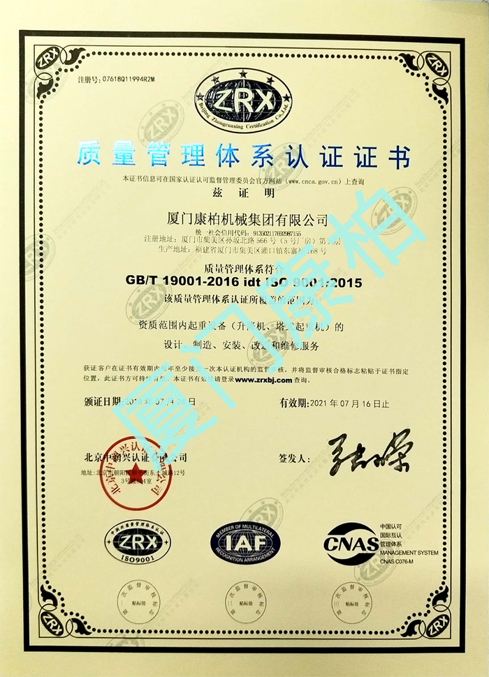 質(zhì)量管理體系認證證書(中文)