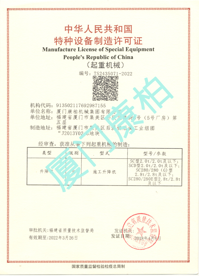 特種設(shè)備制造許可證