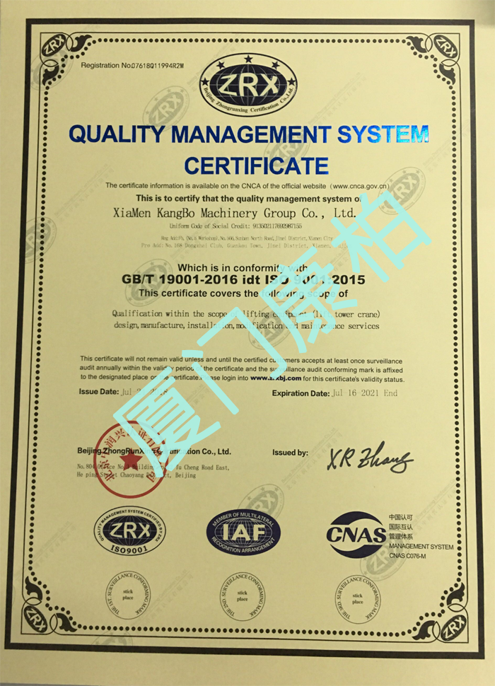 質(zhì)量管理體系認證證書(中文)